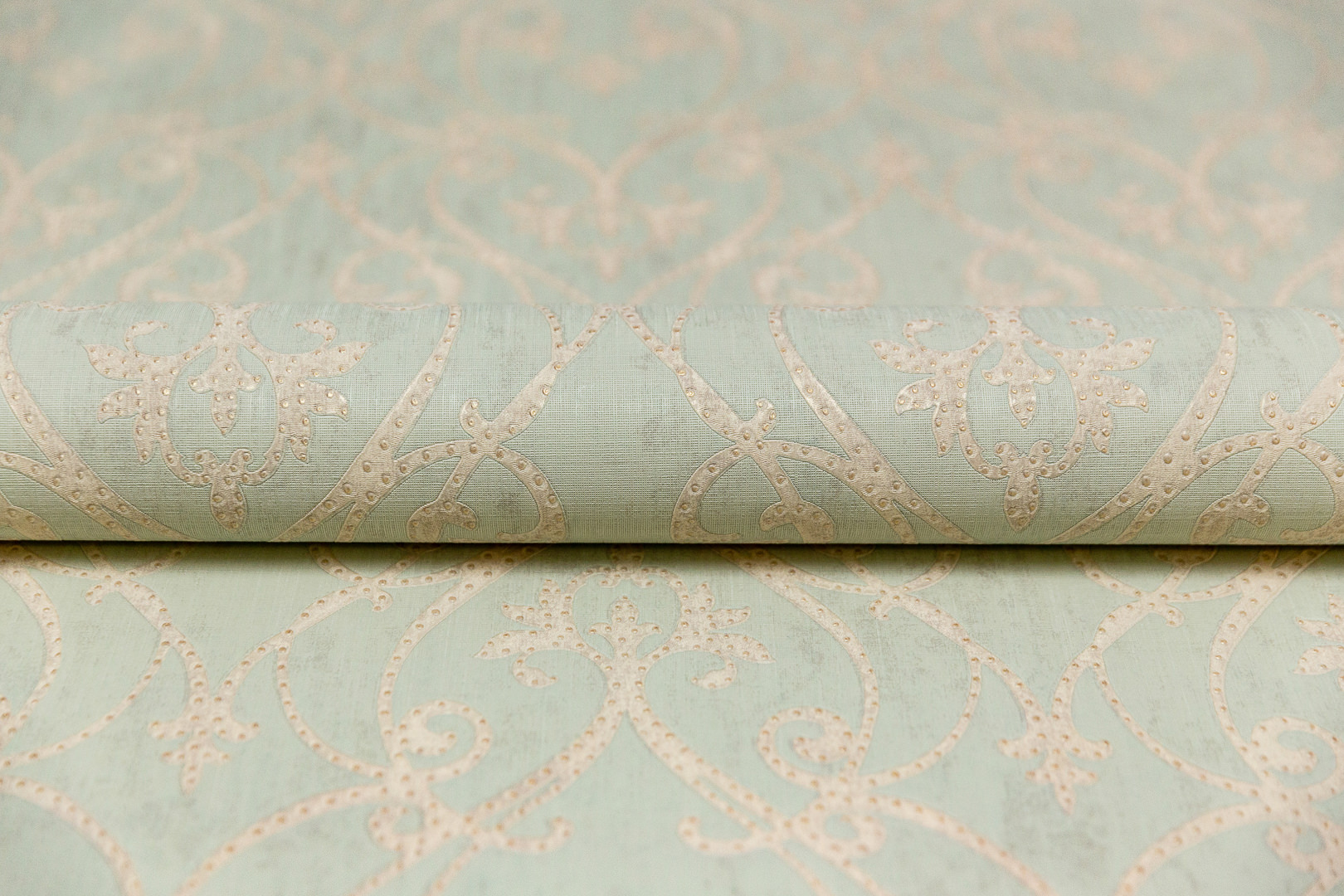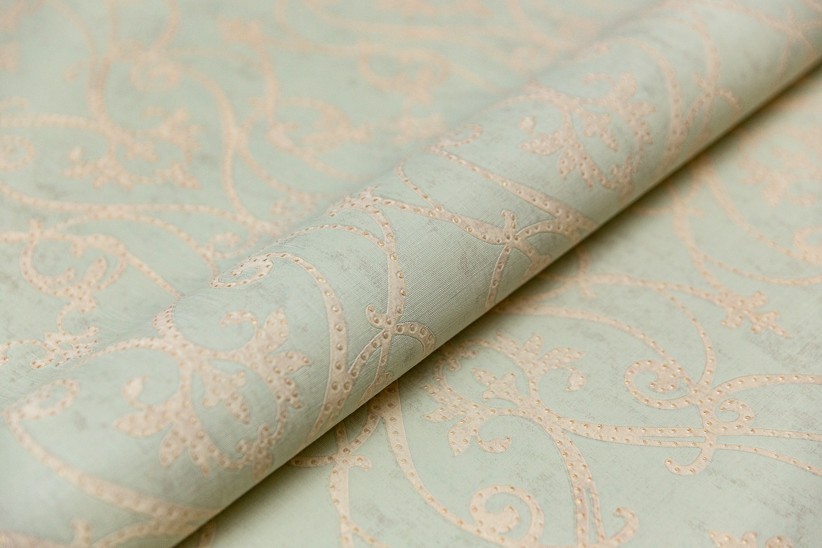 Обои виниловые на флизелиновой основе Дамаск мотив, зелёный