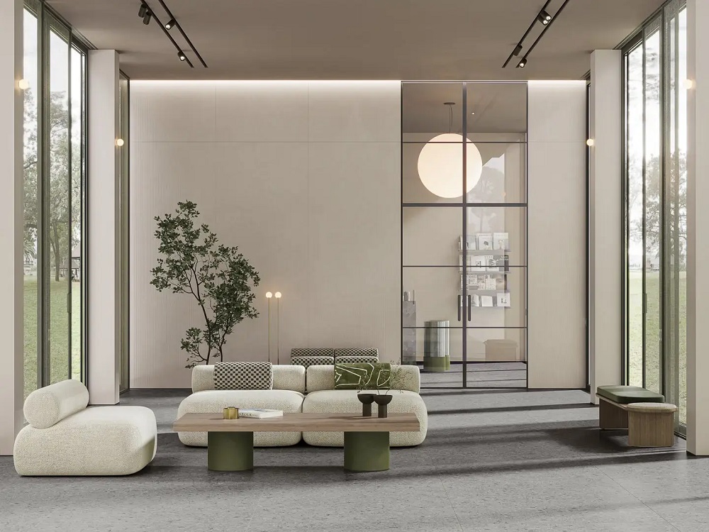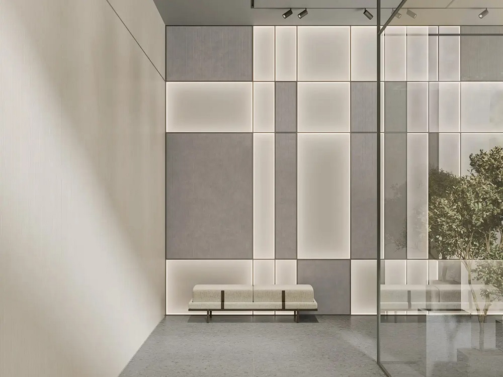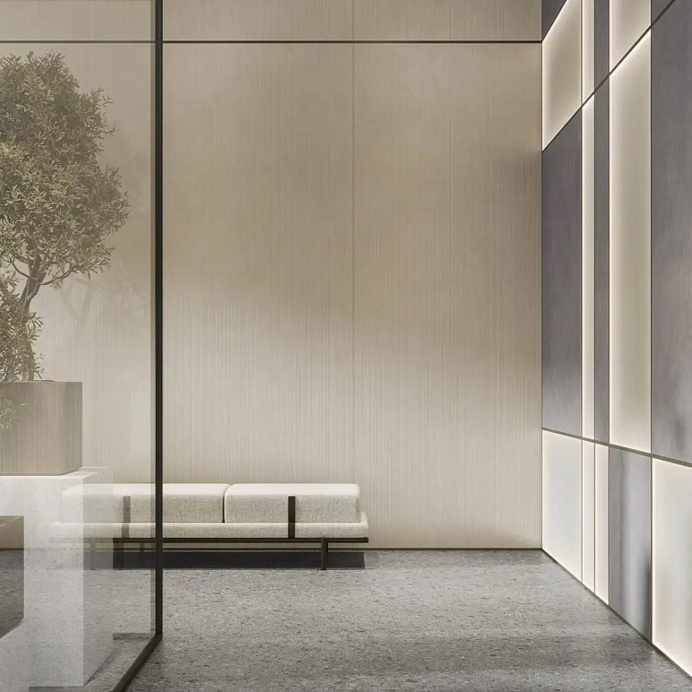 Серия «Вельвет» предлагает тёплую рельефную структуру в строгом вертикальном ритме. Свет скользит по поверхности панели, как по складкам вельветового пиджака. «Вельвет» притягивает не кричащим блеском, а тихой уверенностью, хорошим вкусом и выдержанностью в трёх цветах — бежевом, светло-сером и розовом.
